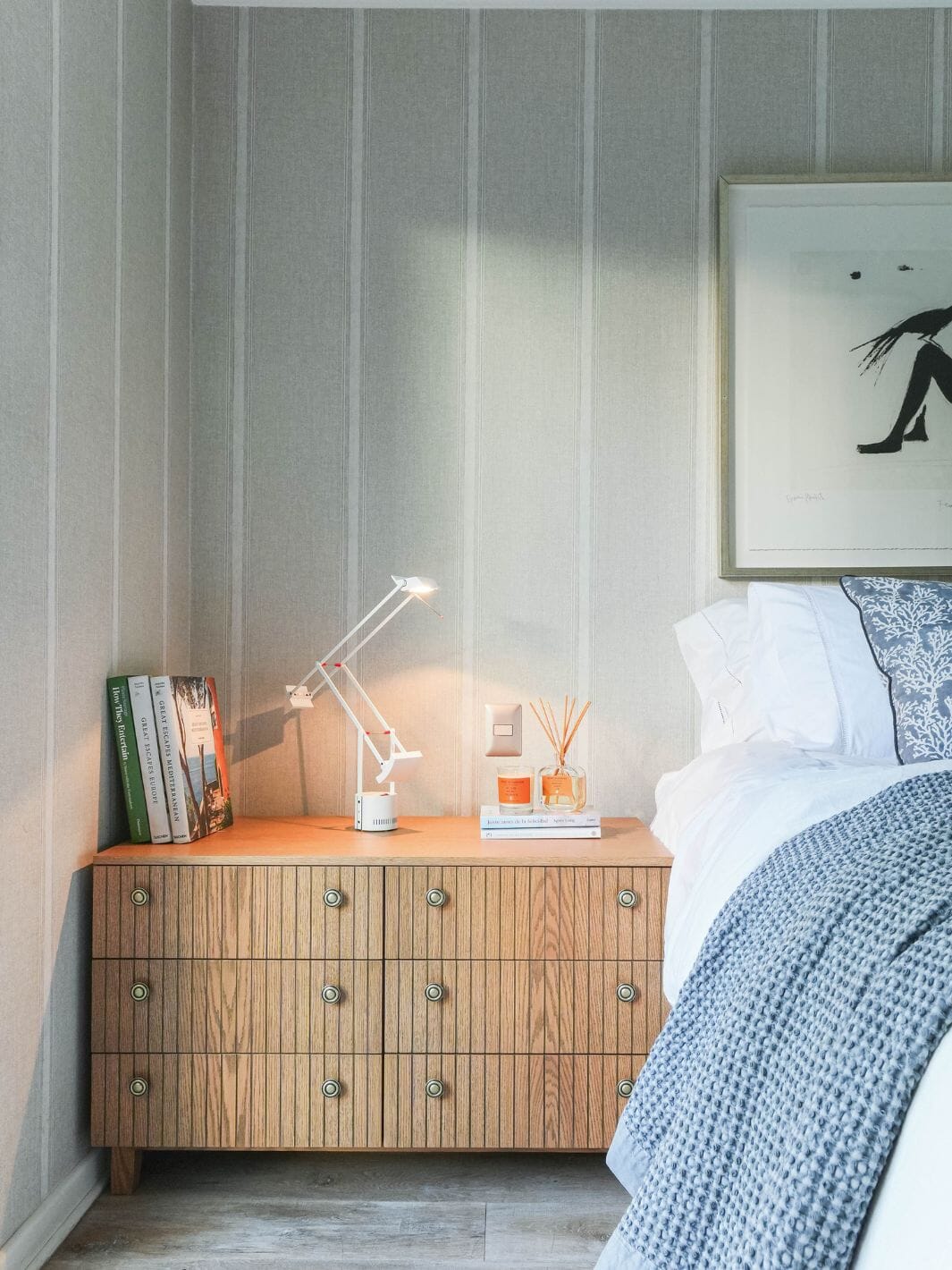 Este distinguido velador/cómoda hará que el espacio personal de tu dormitorio sea un lugar para deleitarse.